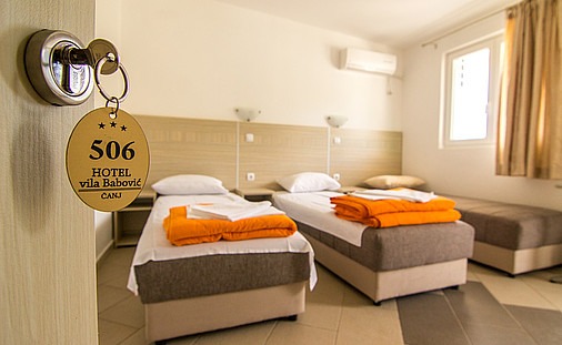 Hotel vila Babović 3* – Novosagrađeni objekat nalazi se na 250 metara od obale. Usluga: Polupansion (doručak – švedski sto, večera – izbor dva jela); Pun pansion (doručak – švedski sto, ručak – kontinentalni, večera – izbor dva jela). Smeštaj: Svaka soba ima frigo-bar, TV,  wireless konekciju, kupatilo, peškire, a većina soba je klimatizovana.   Sadržaj hotela: U sastavu hotela je restoran, caffe bar (wireless,TV), bazen za decu, i igraonica za decu sa prostranom terasom na vrhu hotela odakle se pruža predivan pogled na celu obalu. Parking za goste hotela je obezbeđen.