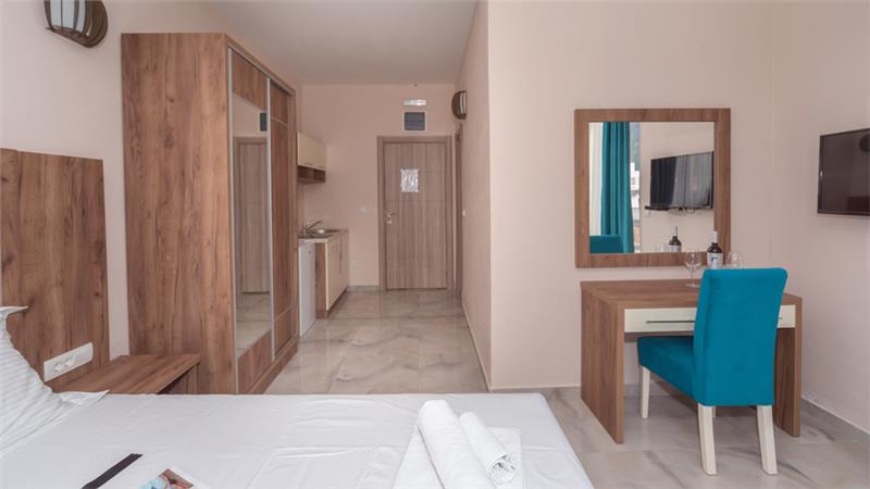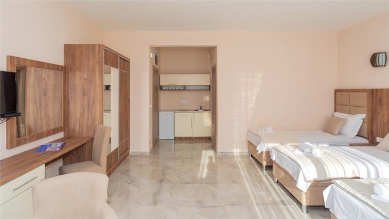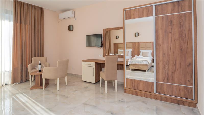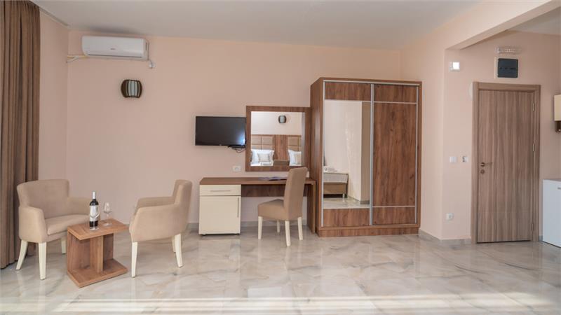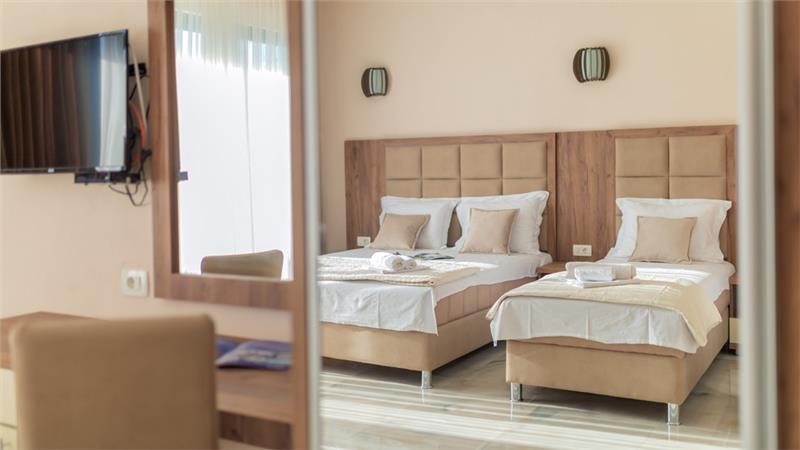 Moderno opremljeni (1/2, 1/3, 1/4) poseduju sopstvenu terasu, kupatilo, TV kablovsku, Wi-FI, frižider, klimu, čajnu kuhinju.