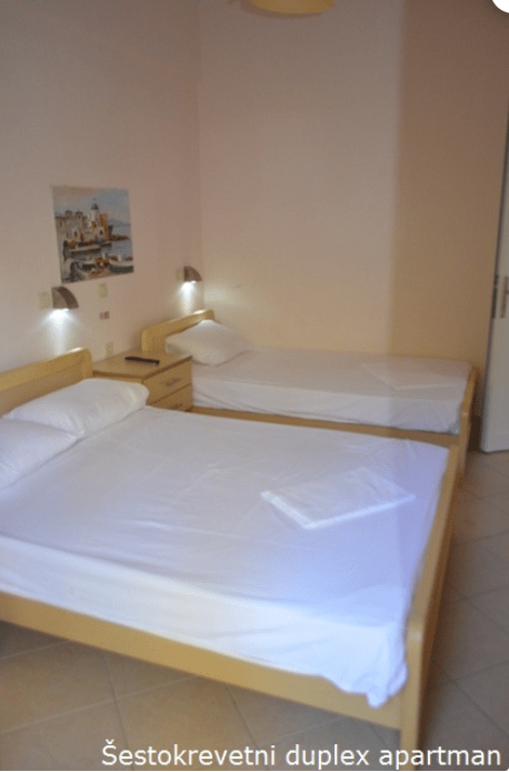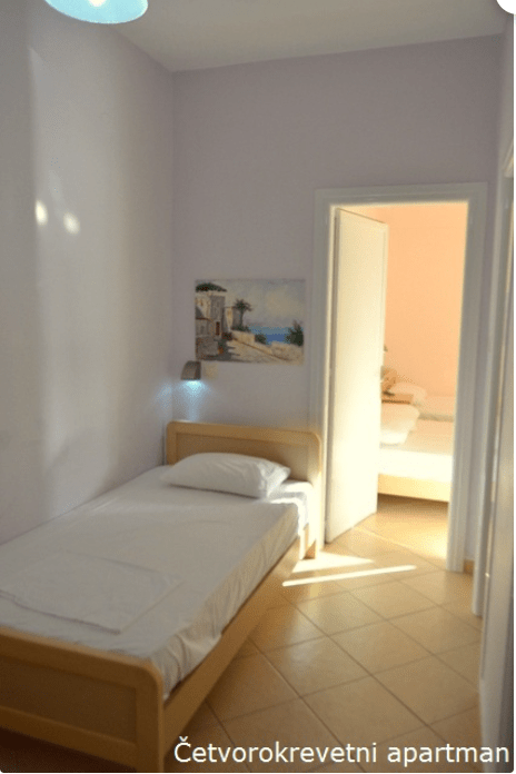 U ponudi imamo trokrevetne i četvorokrevetne apartmane kao i četvorokrevetne, petokrevetne i šestokrevetne duplex apartmane. Apartmani su smešteni na prvom spratu vile i većina ima direktan ili bočni pogled na more. Jedino četvorokrevetni apartman nema pogled na more.