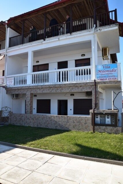 Vila Milonidis se nalazi na predivnoj lokaciji – na samoj plaži. Raspolaže sa dvokrevetnim, trokrevetnim i četvorokrevetnim apartmanima. Smeštajne jedinice imaju kompletno opremljenu čajnu kuhinju u okviru sobe, kupatilo, TV i balkon, Wifi. Svaka smeštajna jedinica ima klima uređaj, čije je korišćenje se doplaćuje na licu mesta ( 5e dnevno ).