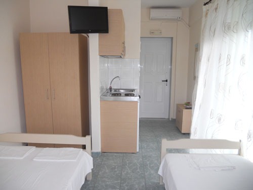 1/4 studio – u jednoj prostoriji čajna kuhinja, dva bračna ležaja ili jedan manji bračni (dimenzija 190×120) i dva obična ležaja