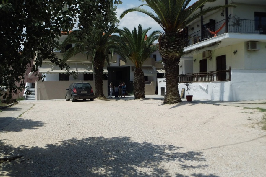Ispred objekta IKIES VILLAGE nalazi se dvorište sa palmama u kojem gosti objekta mogu parkirati kola.