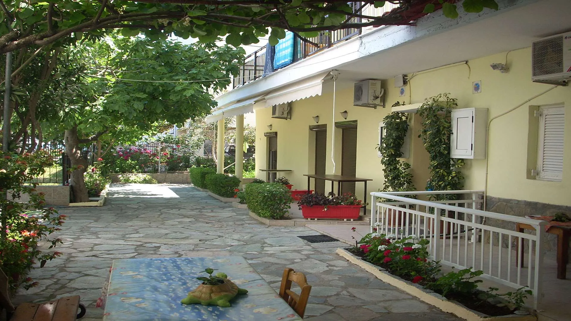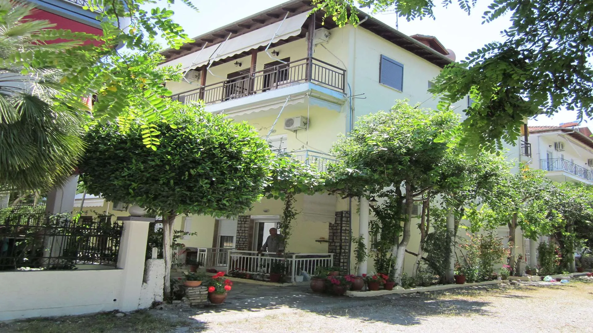 Vila TAKIS I OLGA: Udaljena je 30m od plaže. Dvorište vile je prostrano sa puno zelenila i hladovine. Vila raspolaže standardno opremljenim dvokrevetnim i trokrevetnim studijima za smeštaj 2-4 osobe. Svaka smeštajna jedinica poseduje opremljenu čajnu kuhinju, kupatilo, tv, balkon i klima uređaj (upotreba klima uređaja je uključena u cenu aranžmana za smene u julu i avgustu). Smeštajne jedinice se nalaze na prvom i drugom spratu. Korišćenje klima uređaja je uključeno u cenu u julu i avgustu. U ostalim terminima doplata za korišćenje klima uređaja iznosi 5 eura dnevno po studiju.