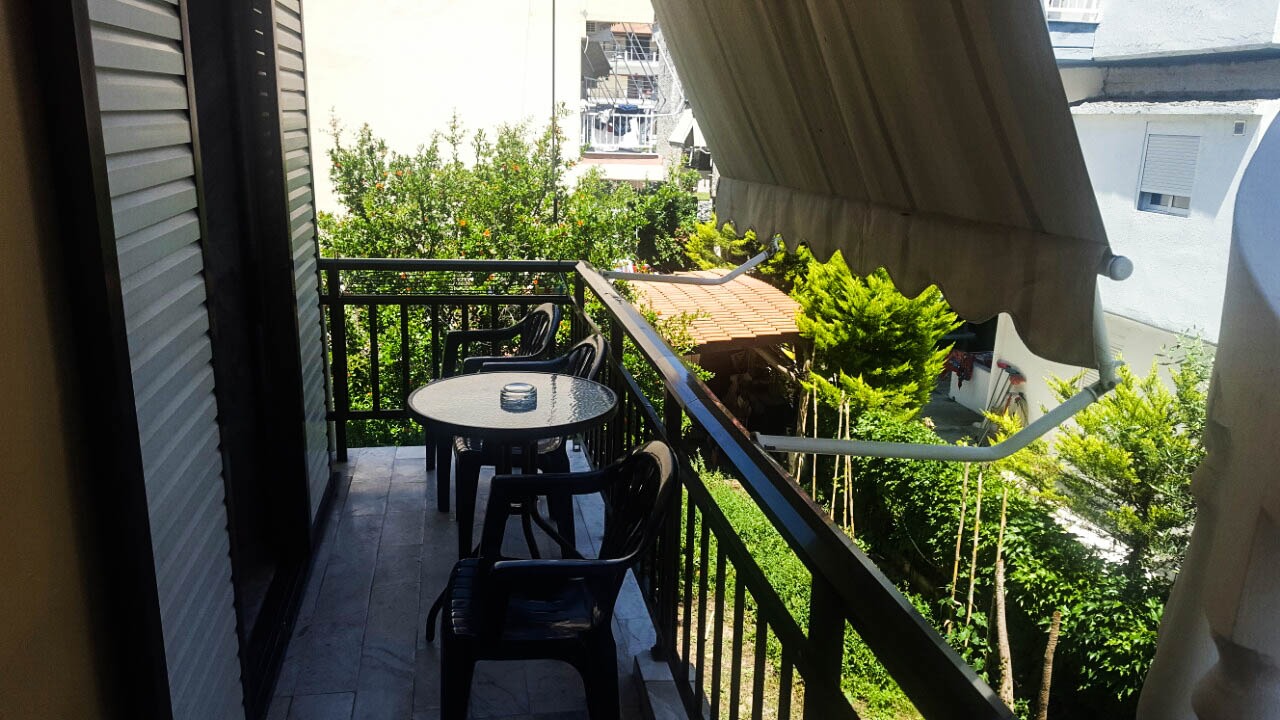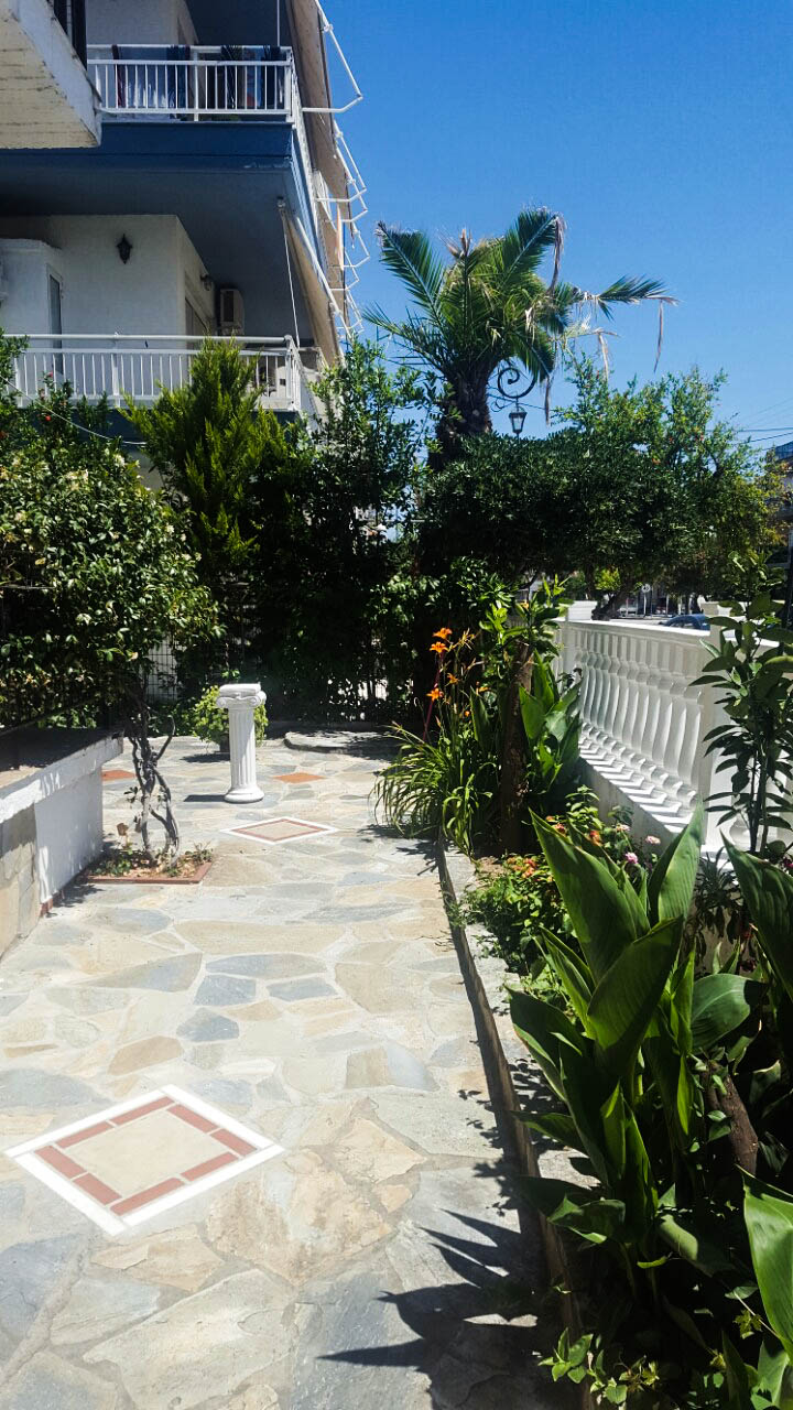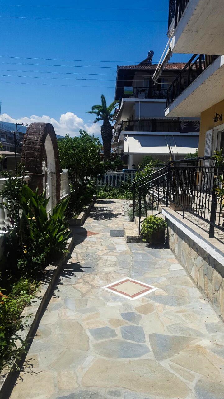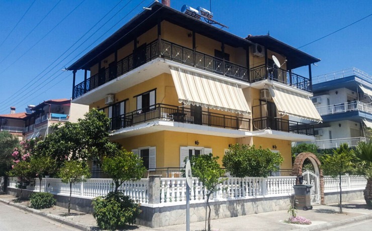 Vila Poly se  nalazi se na 80m od mora. Raspolaže dvokrevetnim, trokrevetnim i četvorokrevetnim studijima i četvorokrevetnim duplex apartmanom, koji se nalaze na prvom spratu i imaju pogled na ulicu ili dvorište.  Svaka smeštajna jedinica poseduje čajnu kuhinju (kuhinja je opremljena osnovnim posudjem i uredjajima – frižiderom i rešoom bez rerne), velie terase, kupatilo,  tv, ležajeve po grčkom standardu i klima uređajem (dodatno se plaća na licu mesta).  Vila poseduje prelepo  dvoriste bogato zelenilom.  Ispred vile postoji javni parking koji mogu koristiti gosti vile Poly.