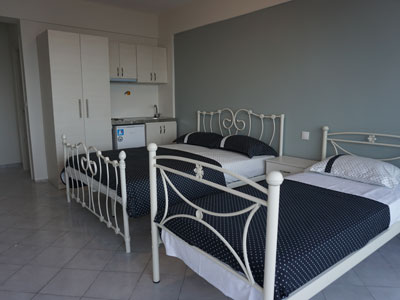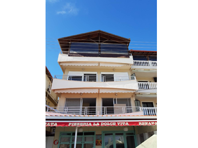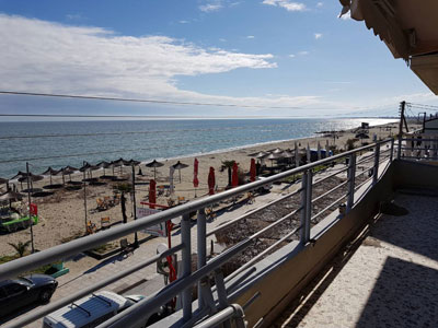 Izvanredna vila Azzurro Mare, nalazi se na samoj obali, plaži i šetalištu Olympic Beach-a. Vila poseduje lift i sastoji od potpuno renoviranih 2018. godine, lepih studija na prvom i drugom spratu. Deo studija je sa direktnim pogledom na more i plažu, Halkidiki i Athos, od kojeg zastaje dah, a deo sa lepim pogledom pozadi na dvorište i okolne zgrade. Studiji su opremljeni klima uredjajem (uz doplatu na licu mesta), aspiratorom, bežičnim internetom (uračunat u cenu) i TV-om. Lepi, ukusno dizajnirani i opremljleni dvokrevetni i trokrevetni studiji sadrže opremljeni kuhinjski deo, deo za spavanje sa francuskim i jednim standardnim ležajem, kupatilo i lepe velike natkrivene terase sa tendom i garniturom za sedenje. Veličina studija je cca 22 kvm + velika terasa. Zahvaljujući potpuno novim kupatilima, novom, izuzetno kvalitetnom nameštaju i opremi, vla Azzurro Marre je odlične A kategorije, nema peškire i nema sopstveni parking.